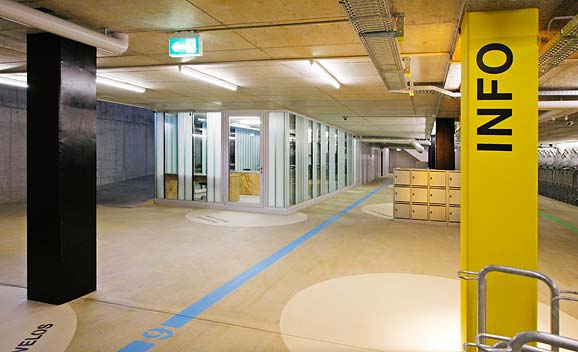 An zentraler Lage am nördlichen Ende des Winterthurer Bahnhofplatzes entstand ein prägnanter Neubau. Für die Velostation im UG. wurde ein neues Signaletikkonzept entwickelt und umgesetzt.